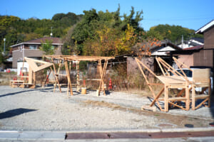 「アジア建築学生ワークショップ」は2016年より大阪を拠点に開催されており、これまでに19か国・地域、34大学から延べ139名の学生が参加しています。2025年度は岡山県津山市城東地区を主会場に、バングラデシュ、韓国、台湾、ベトナム、日本の5か国・地域から建築を学ぶ学生が参加。3つのチームに分かれ、それぞれが小規模な建築作品を制作しました。