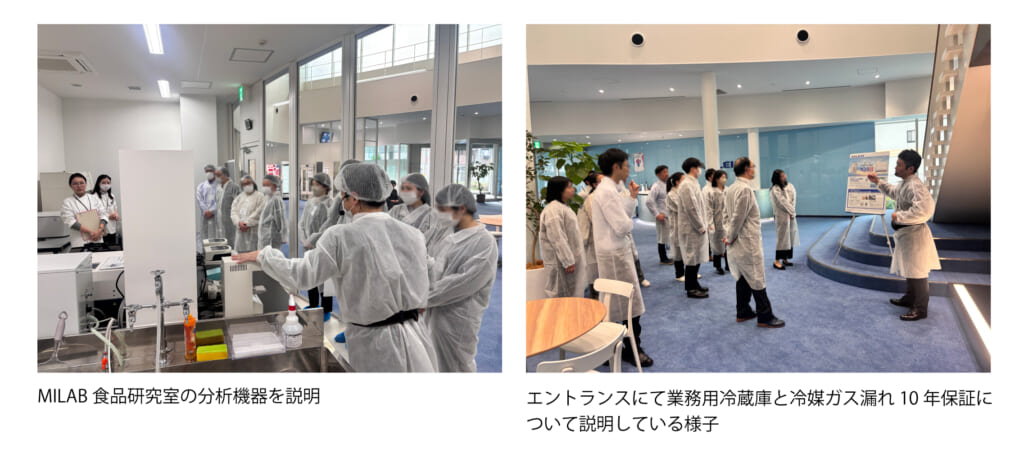 当日は、当社の各種厨房機器が並ぶキッチンスペースや、グループ会社のタカハシガリレイのトンネルフリーザーが並ぶ食品工場研究室など、MILABの施設見学が行われました。また、当社のオープンイノベーションへの取り組みについても紹介し、参加者の関心を集めました。