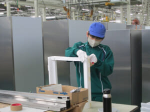 製氷機の部品組立の様子                                 冷蔵庫の部品組立の様子