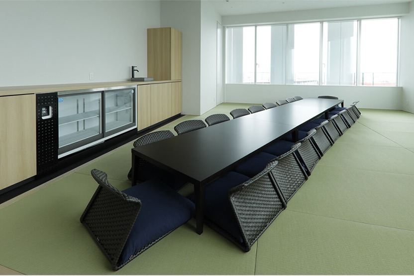 MILABオフィス入居者やガリレイグループ社員との交流の場。ゆったりとした空間で、リラックスをしたり、ブレイクミーティングが行えます。この場所で様々な人や技術が出会い、新たな食の未来を生み出すイノベーション拠点となります。