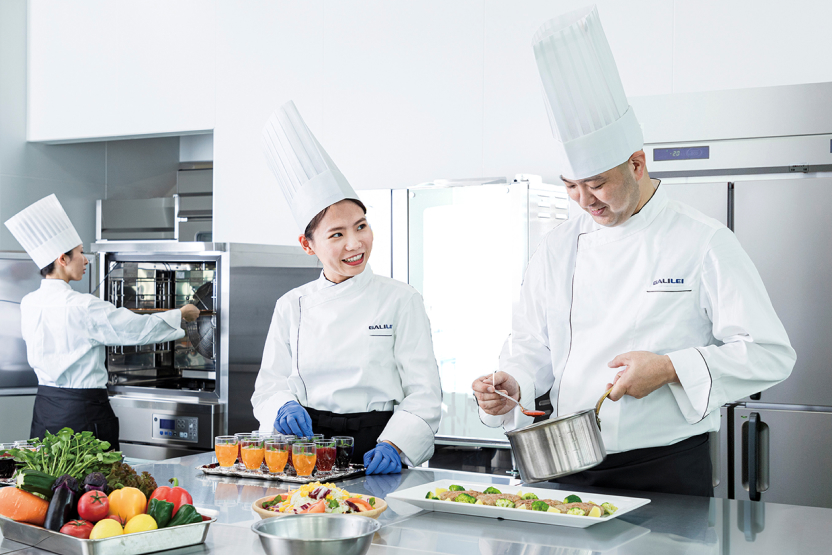 ガリレイグループや厨房機器メーカーの機器やシステムを使用して食事の提供を行う社員食堂。温度管理システムを導入したHACCP管理や、キャッシュレスによる精算システムなど、ソフト面の運用も体験していただけます。社員の健康に配慮したメニューや、食を楽しむアイデアも。利用者の満足度日本一を実現するため、社員全員で作り上げる食堂です。