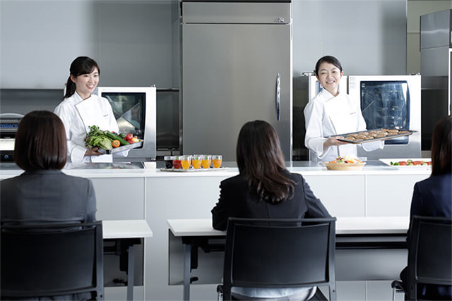 MILABキッチンとパススルー機器(両面扉)でつながったセミナールーム。調理セミナーのほか、各種研修や商品PRイベント等にもご利用いただけます。